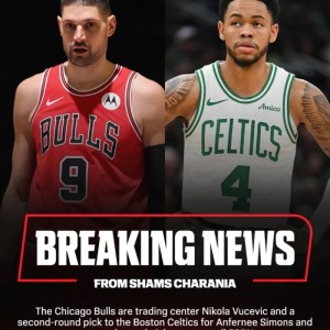 来自名记Shams的报道,凯尔特人和公牛达成了一笔交易,具体细节:——凯尔特人得到武切维奇、2027年次轮(来自掘金)...
