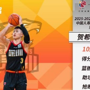 • 完美体育赛事官方-场均20.9分5.5板3.1助,贺希宁当选CBA第二期月度最佳球员