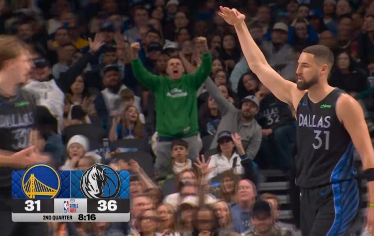 完美体育-手起刀落!克莱追身三分轰进 帮助独行侠打停勇士